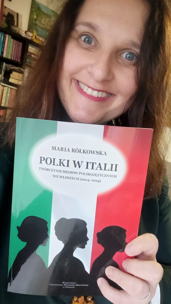 Z wielką radością otwierałam wczoraj przesyłkę z książką. Chodzi o „Polki w Italii. Twórczynie mediów polskojęzycznych we Włoszech (2004-2024)” autorstwa Marii Rółkowskiej. Została wydana w 2025 roku przez Wydawnictwo Uniwersytetu Warmińsko-Mazurskiego w Olsztynie (UWM).