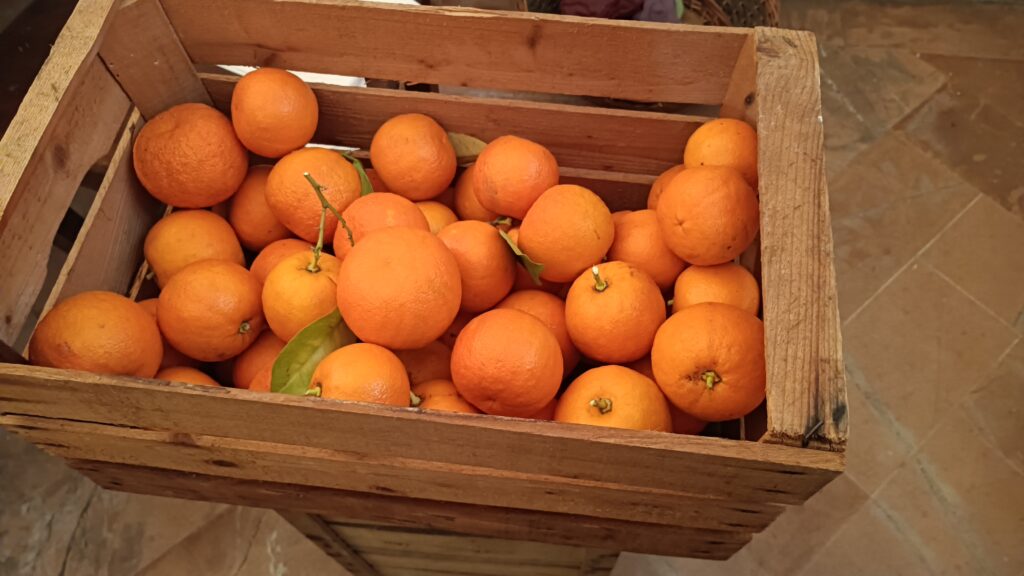 Wokoło było jeszcze trochę pomarańczy w skrzynkach i koszach, ale jak wychodziłyśmy z wizyty z przewodnikiem, to świeciły już pustki.