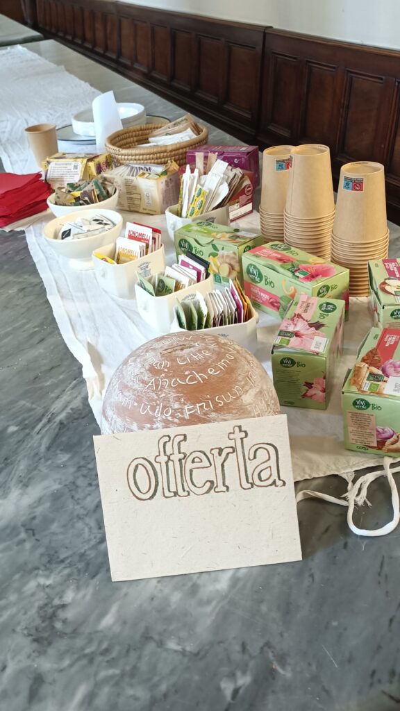 W dużej sali na stole stały kubki i pudełka z herbatami. W tym roku picie herbaty po uprzedniej opłacie.