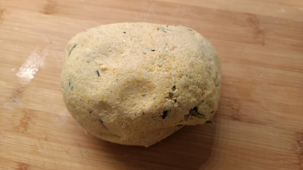 Rozmaryn pokroić na drobniejsze kawałki. Zagnieść wszystkie składniki.