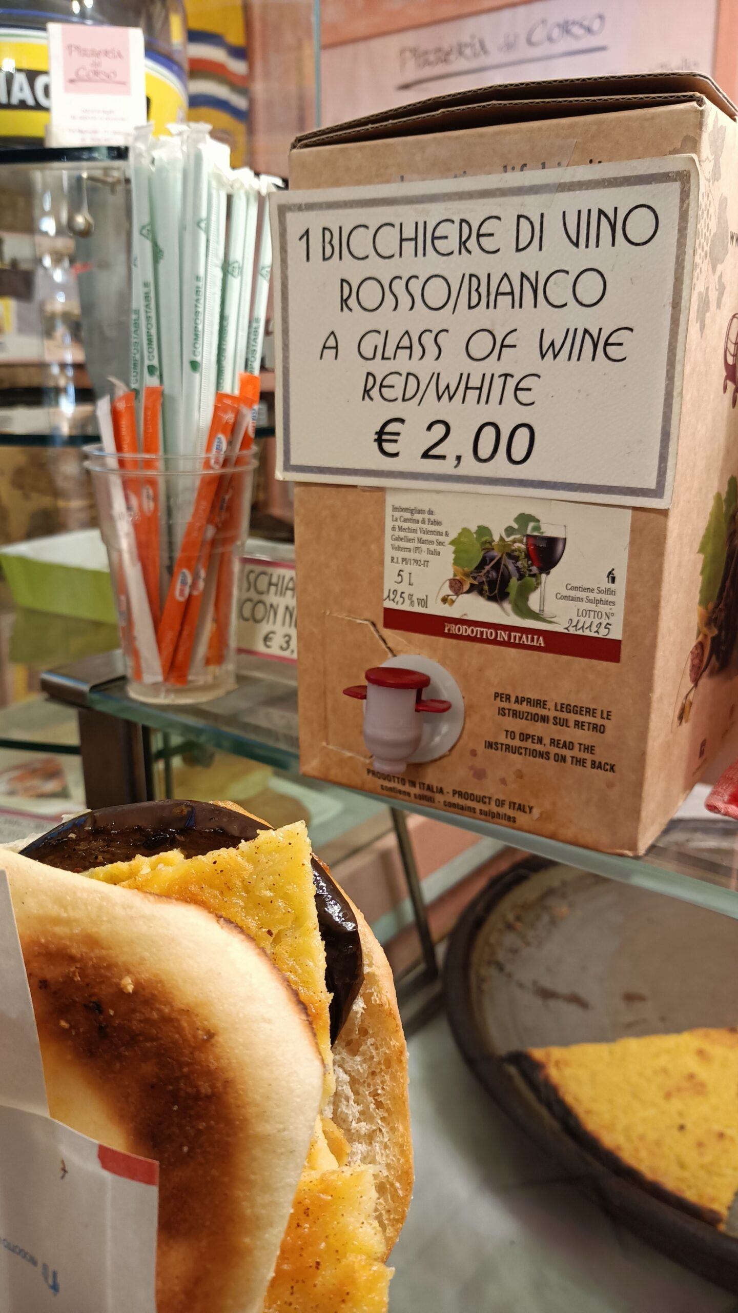 A dodatkowo jest wino self service i włoska muzyka rap. Pewnie w sezonie jest zagłuszana przez tłum ludzi. Wczoraj słuchaliśmy jej tylko my.