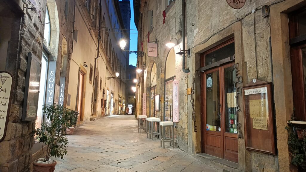 Pizzeria del Corso znajduje się w samym centrum miasta, na ulicy Matteotti 17. Teraz w marcu Volterra wydaje się wręcz wymarła. Spotkaliśmy tylko jedną parę turystów. Natomiast niebawem znaczenie się sezon i ulice zapełnią się ludźmi z różnych krajów świata.